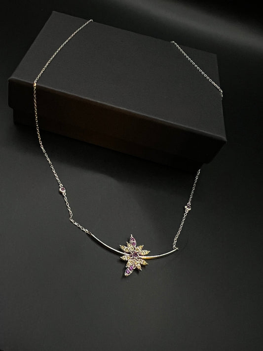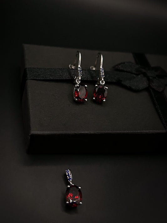 Gold Necklace & Earrings Set With Natural Garnets & Sapphires