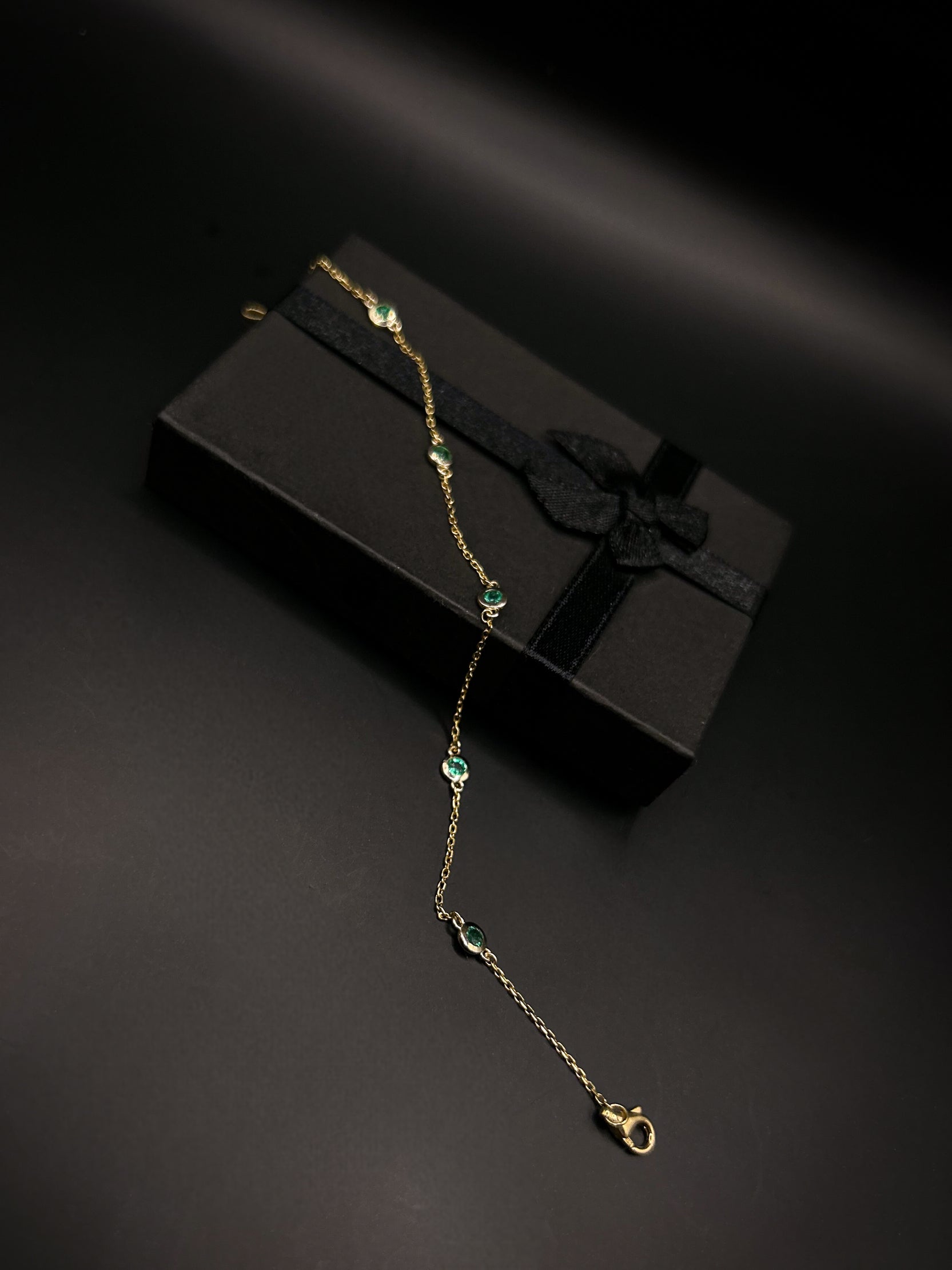 Enter a realm of elegance and allure with our Classy Gold Bracelet, a captivating blend of timeless sophistication and vibrant emeralds. Crafted to perfection, each emerald enchants with its rich green hues, set against the lustrous backdrop of gold. This unconventional piece defies tradition, inviting you to embrace your unique style and elevate any ensemble with a touch of luxury. Whether worn solo as a statement piece or paired with other jewelry for a bold ensemble, this bracelet is destined to be the highlight of your collection.