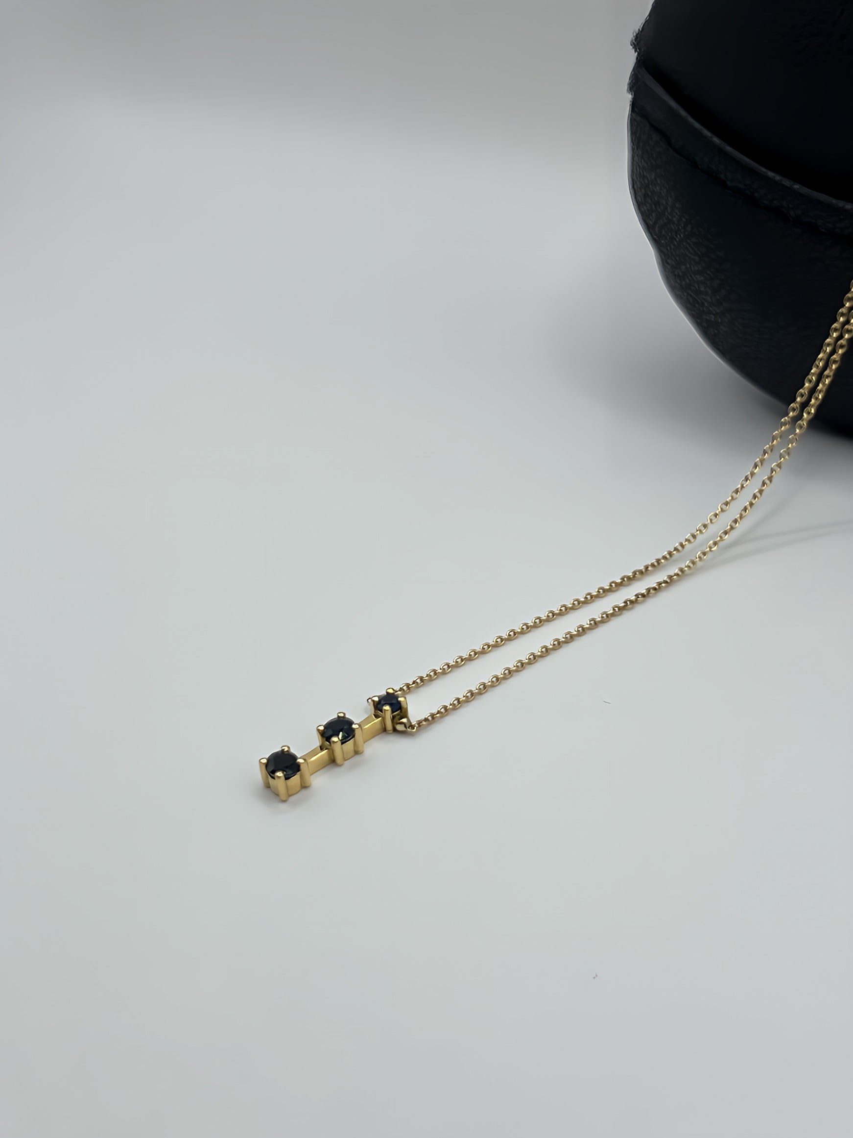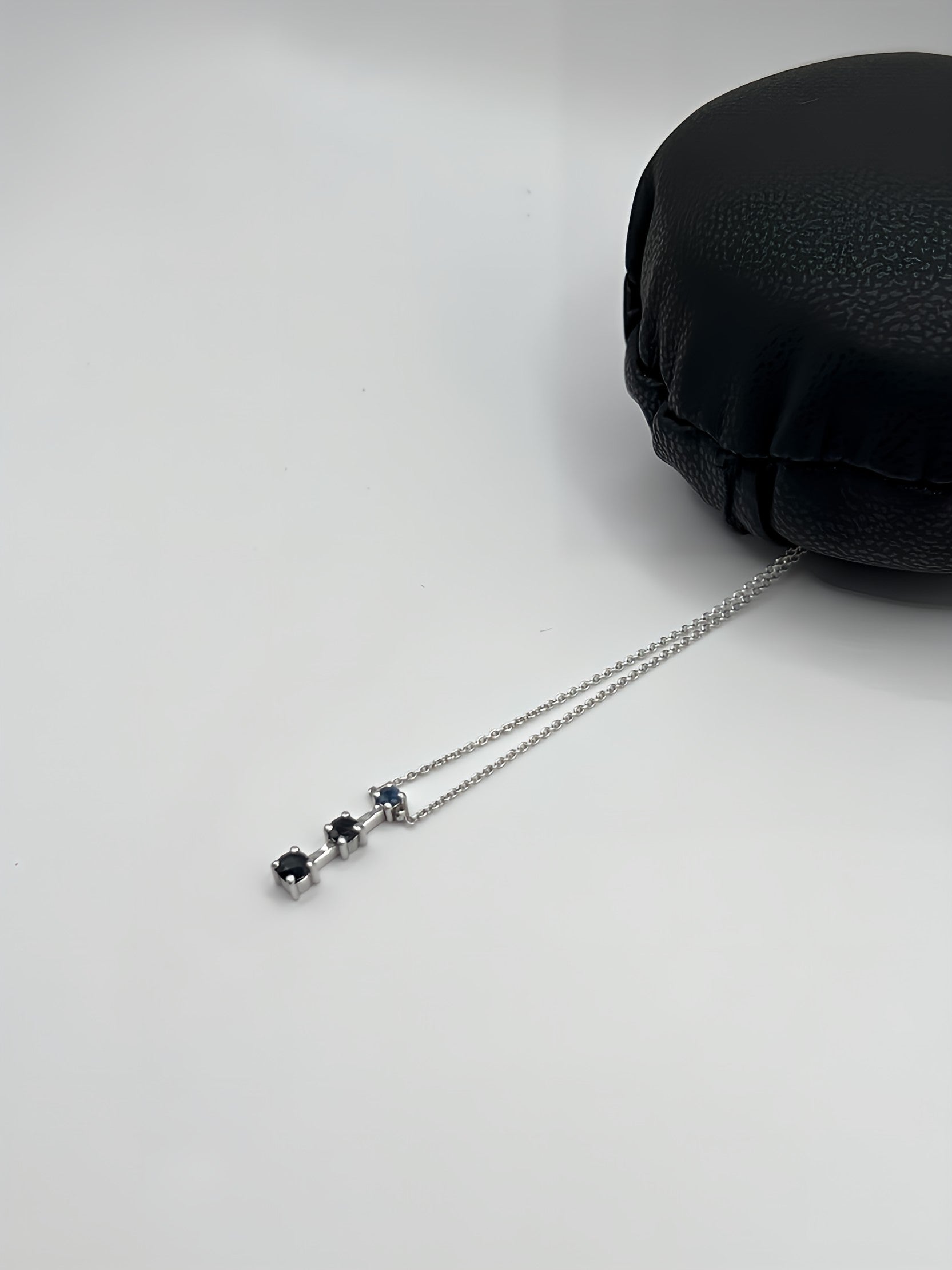 Elevate your look with our exquisite 18k Gold Necklace adorned with multiple captivating blue natural sapphires. Meticulously crafted, each sapphire exudes its own unique brilliance, creating a mesmerising symphony of color and sparkle. The lustrous gold setting adds a touch of elegance and sophistication to this timeless piece. Whether worn alone to make a statement or layered with other necklaces for a chic ensemble, this necklace is sure to become a cherished favorite, perfect for any occasion.