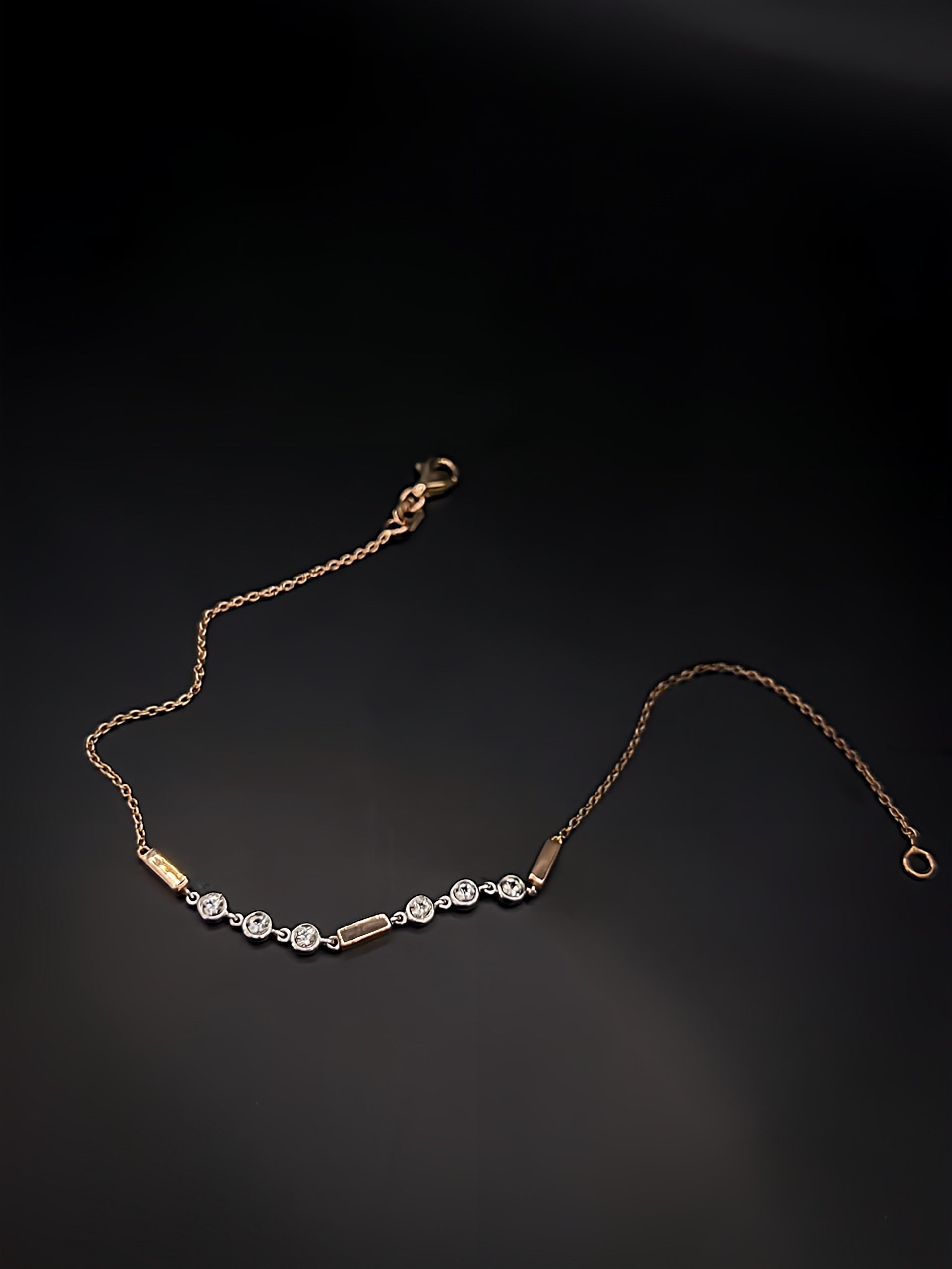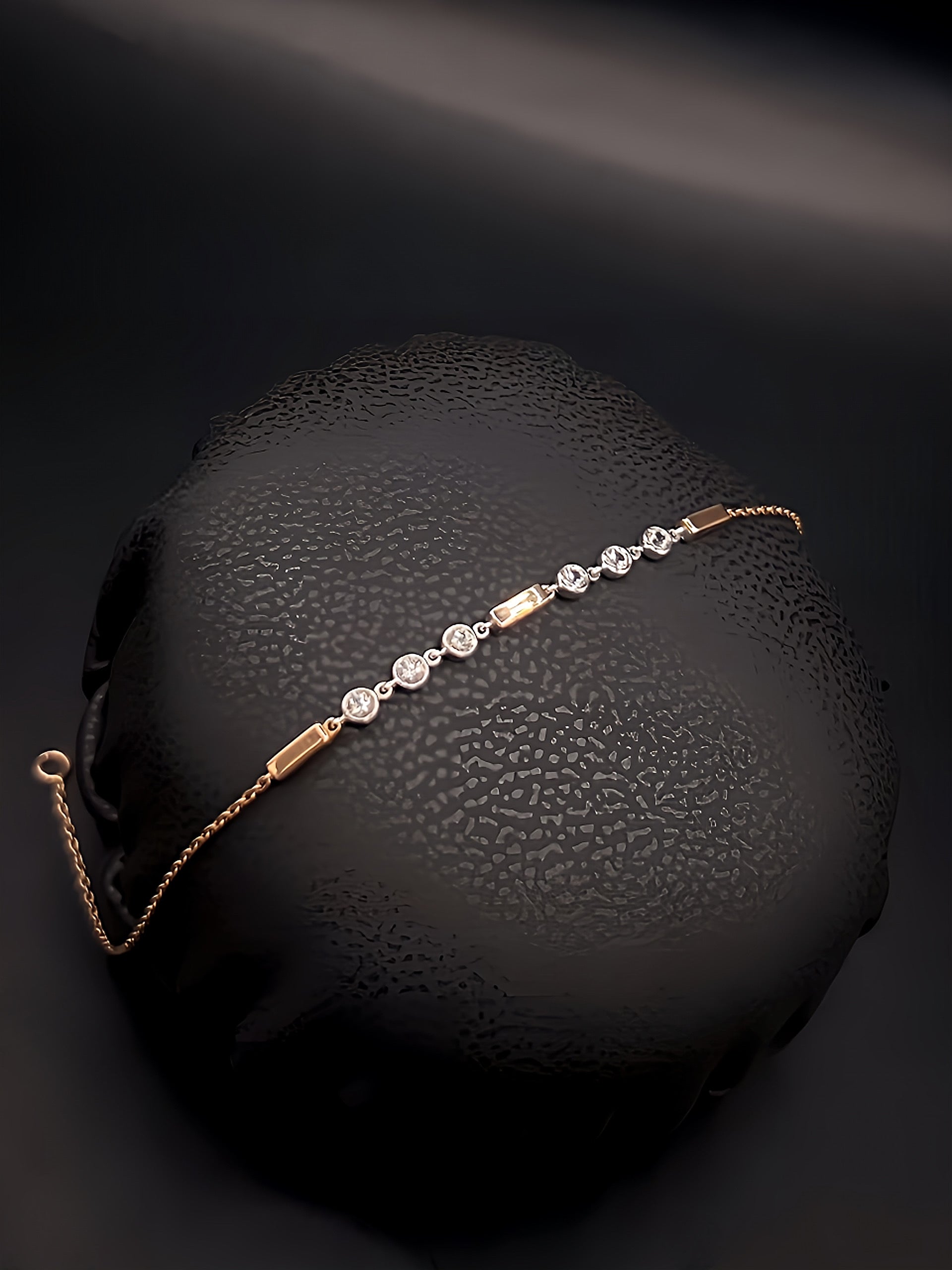 Experience the grace of understated luxury with our Rose Gold Bracelet, featuring pristine white natural sapphires. Crafted to perfection, each delicate sapphire exudes timeless elegance, set against the warm embrace of rose gold. This refined piece effortlessly elevates any ensemble, adding a touch of sophistication to your look. Whether worn alone as a statement of elegance or paired with other pieces for a layered effect, this bracelet epitomizes refined beauty and timeless allure.