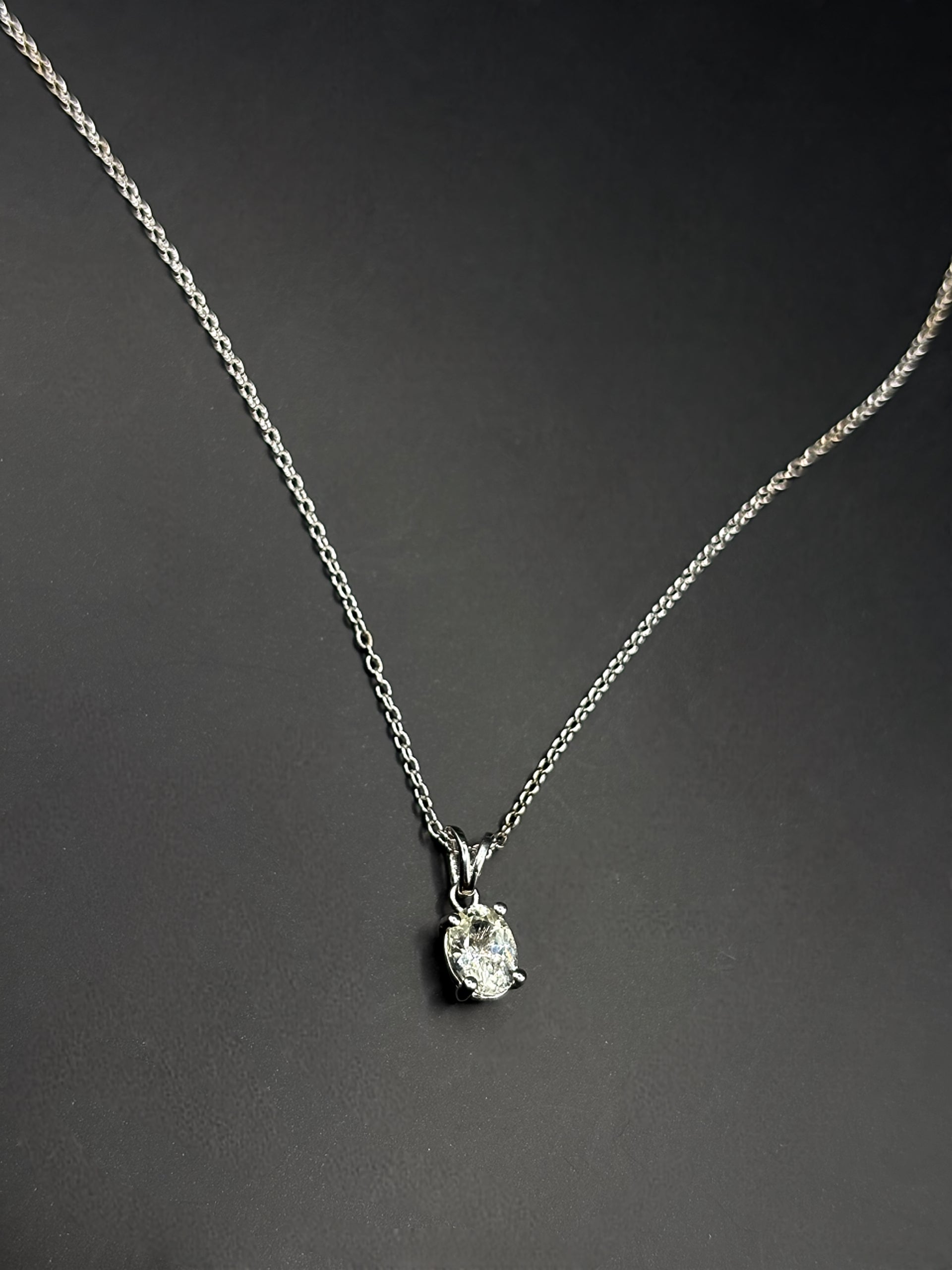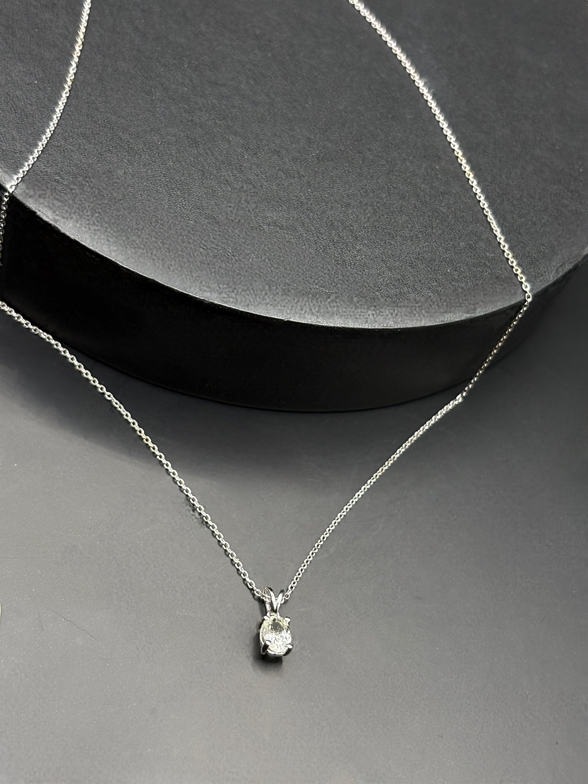Elevate your elegance with this sophisticated oval white sapphire pendant. Renowned for its brilliant clarity and exceptional sparkle, this pendant is designed to complement any outfit, day or night. The timeless design ensures versatility, making it a staple piece in your jewelry collection. Perfect for both special occasions and everyday wear, this pendant captures the essence of refined beauty.