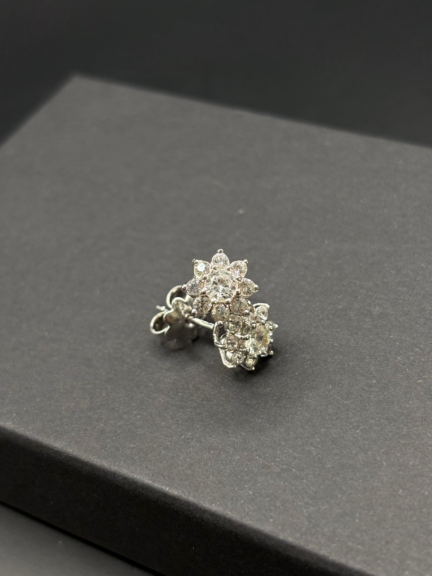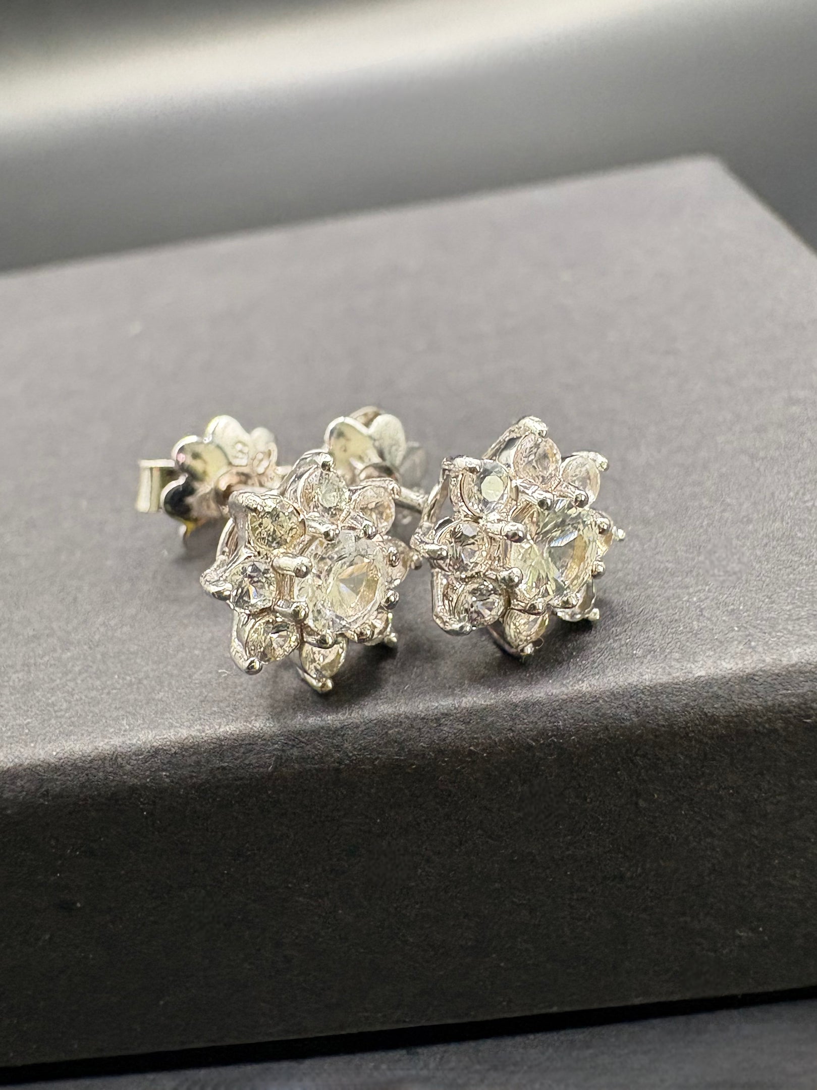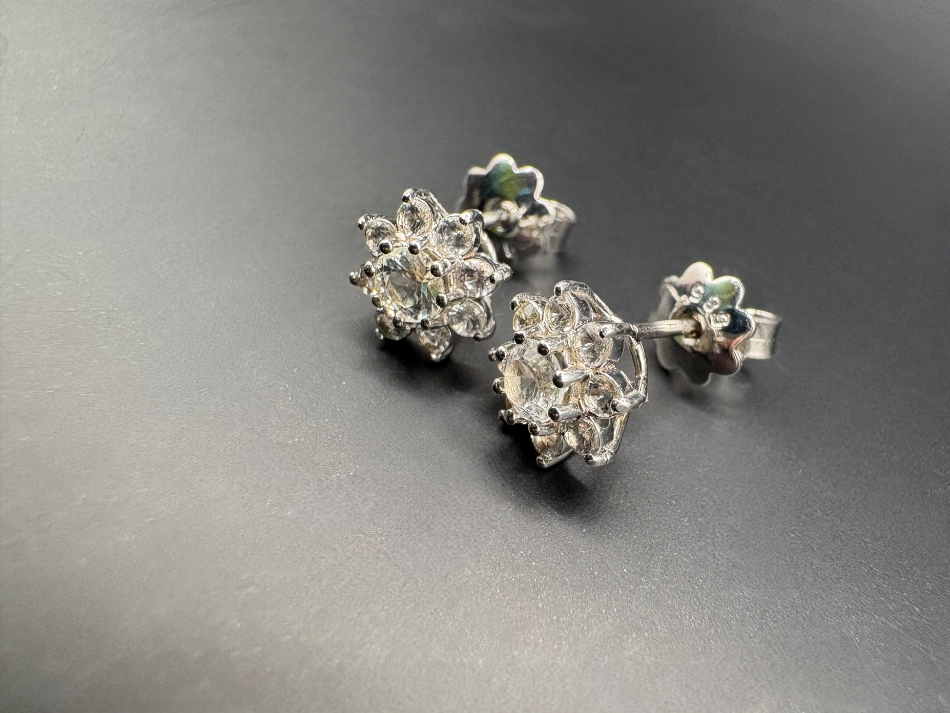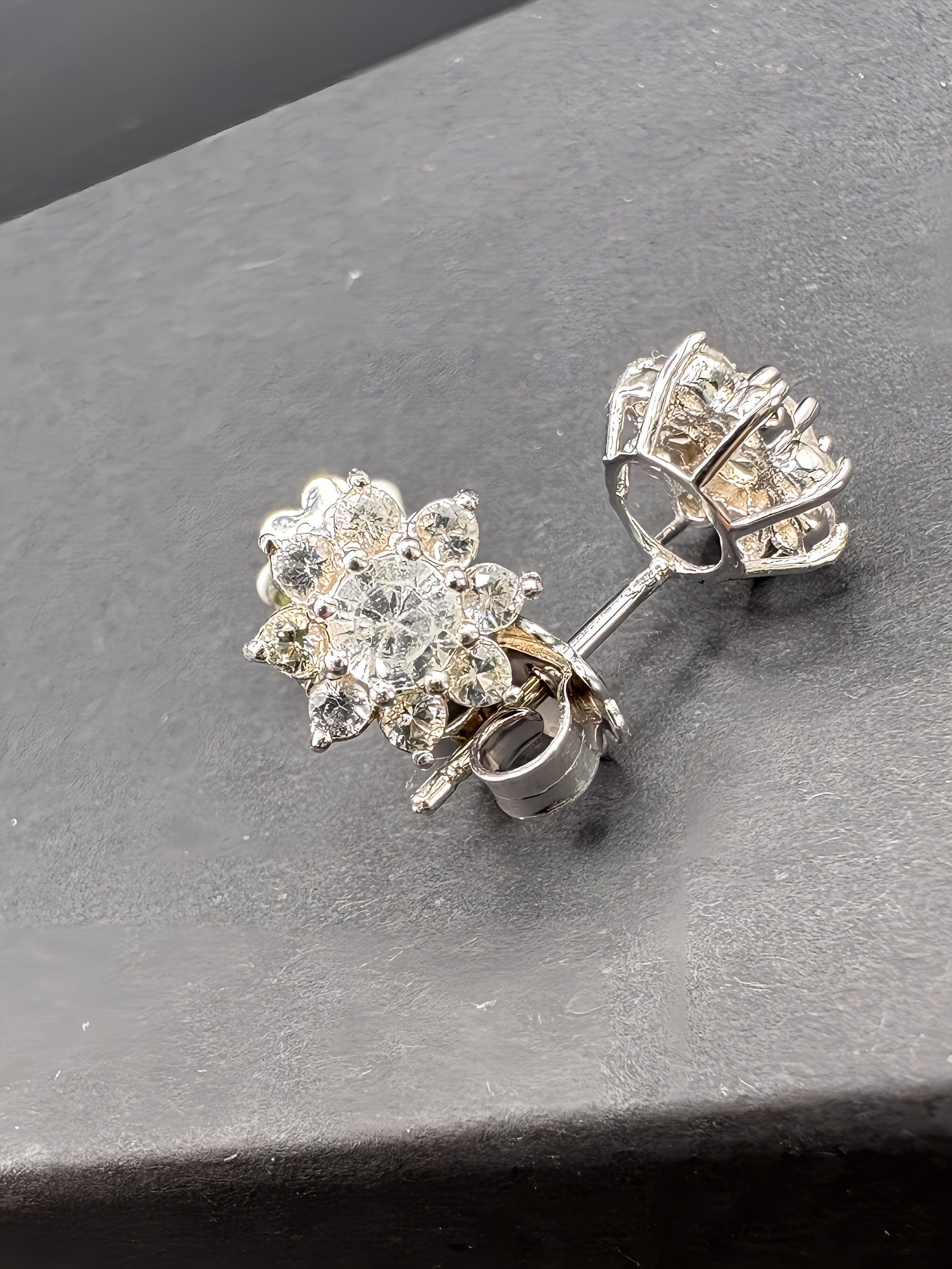 Turn heads with the ultimate in sparkling elegance! These breathtaking white sapphire earrings feature a brilliant central stone, beautifully encircled by eight shimmering sapphires set in radiant white gold. A timeless design redefined for the modern muse, bringing effortless sophistication to every occasion.