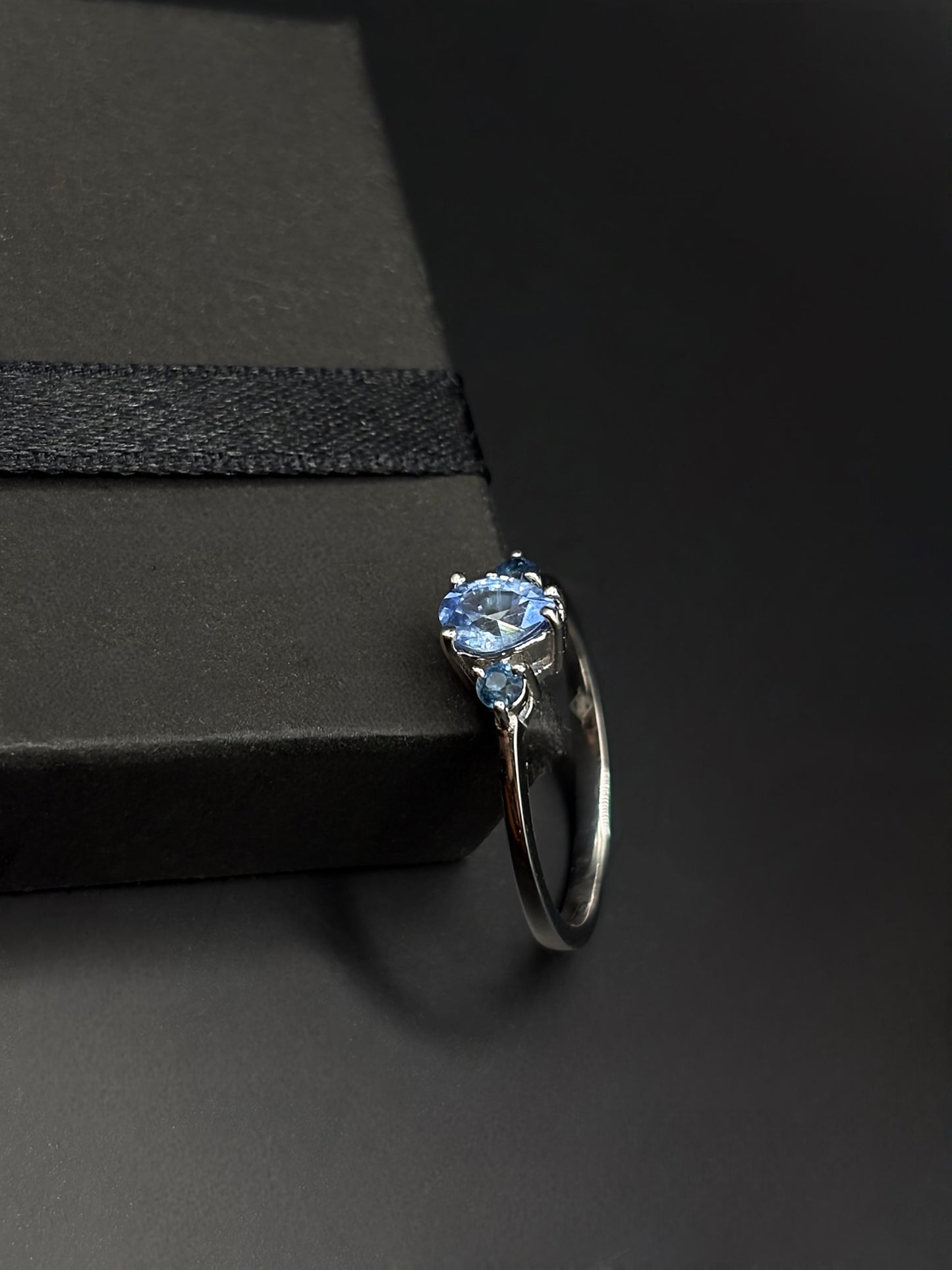 A captivating design for a love like no other. This engagement ring showcases a pear-shaped blue sapphire at its heart, framed by two shimmering side stones for added brilliance and balance.The vibrant sapphire and timeless elegance of the design make this ring a perfect symbol of passion and commitment.